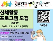 [아시아통신] 양평군은 지역주민의 건강생활 실천과 신체활동 증진을 위해 1월 22일부터 2월 3일까지 ‘신체활동 프로그램’ 참여자를 모집한다고 밝혔다. ‘건강충전·활력충전’은 양평군 용문건강생활지원센터에서 운영하는 프로그램으로, 일상에서 쉽게 실천할 수 있는 신체활동을 통해 주민의 체력 향상과 만성질환 예방을 도모하고 지속 가능한 건강관리 습관 형성을 지원하기 위해 마련됐다. 프로그램은 전문 강사의 지도로 △기초 체력 향상을 위한 운동 △스트레칭 및 근력 강화 △생활 속 걷기 및 신체활동 실천 교육 등으로 구성되며, 연령과 신체 수준을 고려한 맞춤형 방식으로 운영될 예정이다. 운영 기간은 2월 9일부터 4월 29일까지이며, 양평군에 거주하는 주민 누구나 신청할 수 있다. 참가비는 무료이며, 참여를 희망하는 주민은 2월 3일까지 홍보물에 안내된 정보무늬(QR코드)를 통해 접수하거나 전화로 신청하면 된다. 자세한 사항은 용문건강생활지원센터로 문의하면 된다. 전진선 양평군수는 “이번 신체활동 프로그램을 통해 주민들이 일상 속에서 자연스럽게 운동을 실천하고, 스스로 건강을 관리하는 계기가 되길 바란다”며