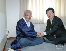 [아시아통신] 오영훈 제주특별자치도지사는 설 명절을 맞아 18일 도내 유일한 생존 독립유공자인 강태선 애국지사의 자택을 방문해 세배하고 새해 인사를 나눴다. 오영훈 지사는 “국가유공자들의 숭고한 희생과 헌신 위에 오늘의 제주가 있다”며 “새해에도 건강하시고, 제주가 우주·신산업 등 새로운 성장 기반을 차근차근 만들어 가는 모습으로 보답하겠다”고 말했다. 이어 “국가를 위해 헌신하신 분들이 일상 속에서 존중받을 수 있도록, 국가유공자 예우 강화를 도정의 중요한 책무로 삼아 끝까지 최선을 다하겠다”고 강조했다. 강태선 애국지사는 “새해에도 제주가 더 크게 발전하길 바란다”며 “도민을 위해 애써 달라”고 덕담을 전했다. 강태선 애국지사는 18세이던 1942년 일본으로 건너가 독립운동을 위한 모임을 조직하고 동지를 규합하다 일제에 체포돼 징역 2년 6월형을 선고받고 복역했다. 광복을 맞아 출옥한 뒤 공로를 인정받아 1982년 대통령 표창, 1990년 건국훈장 애족장을 서훈받았다. 1924년생인 강태선 애국지사는 올해 만 101세로, 현재 국내 생존 애국지사 4명 가운데 한 명이다.