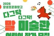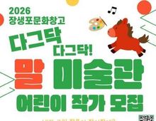 [아시아통신] 고래문화재단에서 관리하는 장생포문화창고는 2026년 병오년 ‘붉은 말의 해’를 맞아 어린이가 직접 전시의 주체가 되는 참여형 미술 전시 ‘다그닥 다그닥! 말 미술관 – 아이들 상상 속 말 친구들-’을 오는 1월 24일부터 2월 25일까지 장생포문화창고 4층 전관에서 개최한다. 이번 전시는 병오년의 상징인‘말(馬)’을 주제로 어린이들이 직접 그린 그림을 전시 공간에 구현하는 참여형·공감형 전시로 기획됐으며 관람객으로 머무는 기존 전시 방식에서 벗어나 아이 한 명 한 명의 상상이 곧 전시 콘텐츠가 되는 것이 가장 큰 특징이다. 장생포문화창고는 전시 개최에 앞서 방문객과 일반 어린이를 대상으로 ‘말’을 주제로 한 그림 작품을 모집하고 있으며 오는 1월 23일까지 접수된 작품 중 약 300여 점을 선정해 전시할 예정이다. 작품 참여 방법은 두 가지로 장생포문화창고를 방문해 현장에서 직접 그림을 그려 제출할 수 있으며 집에서 완성한 작품을 장생포문화창고 1층 안내데스크에 방문 제출하거나 우편으로 제출하는 것도 가능하다. 모집 대상은 ‘말(馬)’을 주제로 한 어린이의 자유로운 상상력과 개성이