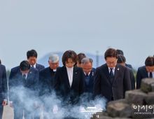 [아시아통신] 이재명 대통령과 김혜경 여사는29일 오전, 제주 4·3 평화공원을 찾아 영령들께 참배하고 유족들과 함께하는 시간을 가졌다. 이번 방문은 국가기념일인 ‘제주 4·3 희생자 추념일’을 앞두고 이루어진 것으로, 이 대통령 내외는 헌화와 분향을 통해 희생자들의 넋을 기렸다. 이어 이 대통령 내외는 희생자 15,126위의 위패가 모셔진 ‘위패봉안실’과 4·3 당시 행방불명되어 시신조차 찾지 못한 희생자들의 표석이 설치된 ‘행방불명인 표석’을 찾아 희생자들을 추모했다. 이 대통령은 위패봉안실에서 나와 방명록에 ‘제주 4·3을 기억하며 국가폭력의 재발을 막기 위해, 민형사 시효제도를 폐기하겠습니다.“라고 남겼다. 이 대통령이 방명록을 작성하는 모습을 지켜보던 임문철 제주4·3평화재단 이사장을 비롯한 관계자들은 문구를 보고 박수로 호응했다. 참배 이후 이 대통령 내외는 제주 4·3 희생자 유족들과 오찬을 함께하며 아픔을 나누고 위로하는 시간을 가졌다. 오찬 간담회에는 윤호중 행정안전부 장관과 오영훈 제주도지사, 김한규·문대림·위성곤 국회의원을 비롯해 김장범 제주
