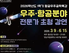 [아시아통신] 경상국립대학교 위성시스템핵심기술연구센터는 3월 9일부터 6월 15일까지 13차례에 걸쳐 우주‧항공 분야 전문가 초청강연을 진행한다. 강연은 매주 월요일 오후 7~9시 가좌캠퍼스 항공우주산학협력관 508호에서 진행된다. 강연에는 산·학·연 관계자 및 우주항공산업 전문가 14명을 연사로 초빙한다. 이 강연은 관련 분야의 최신 동향과 기술을 접할 수 있는 자리로서, 경상국립대학교 미래우주교육센터 참여 연구원·교직원·학생뿐만 아니라 지방자치단체·대학·공공기관 등에서 우주항공산업에 관심 있는 누구나 참석할 수 있다. 강연에서는 국방우주 무기체계 개발 동향, 우주산업의 현황 및 전망, 한국 달 탐사선 다누리호 자세제어계 개발과 운영, 진화적 획득체계의 비행시험 수행방안 및 사례, 국제 UAS 정책 및 규제 동향이 주는 전략적 시사점, 우주 추진 동향 및 활용 소개, 차세대항행시스템(CNS/ATM)의 현황과 전망, 로봇팔 탑재체 개발 동향, 우주 강국으로 가는 길, 국가우주중점기술 개발과 연계 활용을 위한 노력, 우주발사체 부품시험 인프라 기획부터 운용까지의 가이드라인, 멀티 오빗(Multi-Or