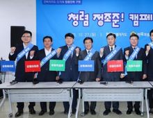 [아시아통신] 전북특별자치도와 전북특별자치도의회는 지난 7월 ‘청렴전북 구현 협약’을 체결한 데 이어, 공정하고 투명한 공직사회 구현이라는 공동의 목표를 실천하기 위해 27일 전북도청 직원식당 로비에서 ‘청렴전북 구현 캠페인’을 공동 개최했다고 밝혔다. 이날 행사에는 김관영 전북특별자치도지사, 문승우 전북도의회 의장, 이명연·김희수 부의장, 윤수봉 의회운영위원장, 최형열 기획행정위원장, 강동화 윤리특별위원장, 김진철 감사위원장 등 양 기관 주요 인사 10여 명이 참석해 청렴 실천 의지를 함께 다졌다. 참석자들은 ‘갑질’, ‘특혜’ 등 부패행위 문구가 적힌 과녁을 사격하는 퍼포먼스에 참여해 부패 근절에 대한 강한 의지를 표명했다. 사격이 명중해 과녁이 쓰러질 때마다 환호와 박수가 이어졌으며, 청렴을 향한 도와 의회의 단결된 의지를 상징적으로 보여주는 장면이 연출됐다. 문승우 의장은 “'청렴 정조준 공동 캠페인'을 통해 공직사회 전반에 청렴 의식이 더욱 확산되기를 기대한다”며, “도의회 역시 도민의 대표기관으로서 청렴을 핵심가치로 삼는 의정활동을 펼쳐 나가겠다”고 밝혔다. 김관영 도지사는 “청렴은 모든
