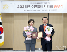 [아시아통신] 수원특례시의회 김은경 의원(더불어민주당, 세류1·2·3, 권선1동)은 12월 31일 수원특례시의회에서 열린 2025년 수원기자클럽 의정대상 시상식에서‘공감과 나눔의 의정대상’을 수상했다. 이날 김 의원은, ▲전문성과 재능을 바탕으로 한 지역사회 봉사, ▲시민의 마음에 직접 다가가는‘공감의 정치’실현 등을 통해 따듯한 공동체를 만드는 데 기여한 공로를 인정받아‘공감과 나눔의 의정대상’을 수상했다. 김 의원은 수상 소감에서“이번 수상을 계기로 수원의 발전과 시민의 삶의 질 향상, 풀뿌리 민주주의 발전을 위해 더욱 열심히 의정활동에 임하겠다.”라고 밝혔다. 김은경 의원은 제12대 수원특례시의회 의원으로, 지역 현안 해결을 위한 정책 제안, 시민과의 소통 강화, 복지 사각지대 해소 및 생활밀착형 정책 추진 등 시민 삶의 질 향상과 지역사회 발전을 위한 현장 중심의 모범적인 의정활동을 펼쳐왔다.