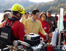 [아시아통신] 이재명 대통령은 6일 오후 강원도를 방문해 관·군의 산불 진화 장비와 대응체계를 점검한 뒤, 동해안 산불 위험 지역을 시찰했다. 이 대통령은 취임 직후부터 관계기관에 가용 가능한 자원을 총동원하는 등 강력한 산불 진압 초기 대응체계를 마련하라고 거듭 지시해 왔다. 이번 방문은 이러한 대통령 지시사항의 이행 상황을 직접 점검하기 위해 실시된 것이다. 이 대통령은 먼저 강원 원주시에 위치한 산림청 산림항공본부를 찾아 산림청과 군(軍)의 산불 진화 헬기, 드론, 차량 등 핵심 장비를 점검했다. 현장을 둘러본 이 대통령은 "산불이 발생했을 때 초기에 신속하게 대응할 수 있도록 현장의 1차 책임을 명확히 하라"고 지시했다. 또한 "산불 대응 관련 예산과 사업은 국민이 납득할 수 있도록 투명하고 효율적으로 운영하라"고 말하면서도, "산불 대응에 있어서는 '아깝다'고 생각하지 말고 초기부터 전력으로 대응하라"고 당부했다. 이어 이 대통령은 산림청과 국방부의 ‘산불 진화 합동훈련’을 참관했다. 훈련은 헬기 레펠을 이용한 공중 진화, 드론을 활용한 정밀 진화, 헬기 물 투하 등의 순서로 진행됐다. &