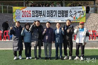 [아시아통신] 의정부시의회는 16일 직동축구장에서 ‘2025년 의정부시의회 의장기 연령별 동호인축구대회’를 개최했다. 이번 대회는 의정부시의회가 주최하고 의정부시축구협회가 주관해 연령대별 축구 동호인들이 참여하는 행사로 마련됐다. 총 22개팀 500여 명의 선수들이 출전하며, 11월 16일과 23일 양일간 직동축구장, 종합운동장, 녹양보조축구장 등 3개 구장에서 진행된다. 개회식에는 김연균 의정부시의회 의장, 시의원을 비롯해 의정부시장, 의정부시축구협회장 등이 참석했으며, 국민의례를 시작으로 표창 수여, 대회사, 기념사, 입장상 시상, 기념촬영 순으로 진행됐다. 김연균 의장은 “축구협회 관계자 여러분의 노고에 감사드린다”며 “이번 대회가 축구인의 경기력 향상은 물론 동호인 간 소통과 화합을 높이고, 지역사회 발전에 기여하는 뜻깊은 대회로 자리매김하길 바란다”고 말했다.