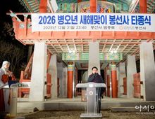 [아시아통신] 진접읍 봉선사에서 2026년 희망 가득한 새해를 기원하는 제야의 종소리가 울려 퍼졌다. 남양주시의회(의장 조성대)는 31일 진접읍에 위치한 대한불교조계종 제25교구 봉선사(주지 호산스님)에서 열린‘2026년 봉선사 새해맞이 타종식’에 참석해 시민들과 함께 병오년(丙午年) 새해의 힘찬 출발을 함께했다. 봉선사가 주관한 이날 행사는 조성대 의장을 비롯해 이정애 부의장, 이경숙 복지환경위원장, 김지훈(국) 의원, 김동훈 의원, 이수련 의원, 김상수 의원, 손정자 의원 및 주광덕 남양주시장, 지역 국회의원, 봉선사 관계자 및 신도, 지역주민 등 300여명이 참석했다. 행사는 송년법회를 시작으로 △교구장 호산스님의 인사말씀 △새해 덕담 및 송년 인사 △발원문 △봉선사 대종 소개 △타종 순으로 진행됐으며, 한파로 인한 추운 날씨 가운데서도 타종식에 참석한 시의원들과 시민들은 덕담과 따뜻한 온기를 나누며 훈훈한 새해를 함께 맞이했다. 특히, 주요 내외빈의 타종 이후 일반 시민들도 함께 타종자로 참여하는 순서를 마련해 새해맞이 타종식의 의미를 더했다. 조성대 의장은 “시민 여러분과 올
