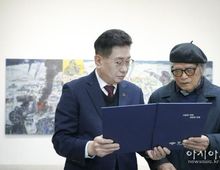 [아시아통신] 원로작가 이동표 화백의 작품 기증식이 지난 23일 오전 11시 20분 양평군립미술관 지하 전시장에서 진행됐다. 기증식에서는 전진선 양평군수가 기증증서를 수여했으며, 이어 작가의 작품 설명과 전시 관람이 진행됐다. 기증 작품은 양평군립미술관 수장고에 보관되며, 군립미술관 기획 전시를 비롯해 향후 국제평화공원 및 양평박물관 개관 시 활용될 예정이다. 기증 작품은 '양평군 지평면 지평리 전투 대승하다'(356×132㎝, 2010년)로, 양평군립미술관 2025년 겨울 기획 전시 '전쟁과 평화, 삶의 서사' 출품작이다. 이동표 화백은 1932년 황해도 해주 출신의 실향민으로, 고향 상실의 기억과 향수를 작품 세계의 정서적 기반으로 삼아왔다. 1994년 양서면 복포리에 입향한 이후 지역을 기반으로 왕성한 창작 활동을 이어오며, 양평 미술계의 원로로서 지역의 정체성 형성과 미술 문화 발전에 꾸준히 기여해 왔다. 그의 작품은 잃어버린 고향에 대한 기억과 그리움을 서정적으로 표현하고, 개인의 체험을 시대적 기억으로 확장해 온 것이 특징이다 전진선 양평군수는 “지평리 전투의 상징적인 장면과 현장감을 담은 뜻깊은 작