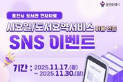 [아시아통신] 용인특례시는 용인시도서관 전자자료인 시요일과 도서요약서비스 이용자를 대상으로 사회관계망서비스(SNS) 이벤트를 운영한다고 14일 밝혔다. 도서관 정회원이면 누구나 참여할 수 있다. 시요일, 도서요약서비스 이용 후 QR코드로 SNS 설문지 폼에 도서관 아이디와 이용 인증 화면 등을 입력해 제출하면 된다. 이벤트 참여 기간은 17일부터 30일까지다. 참여자 중 추첨을 통해 50명에게 커피 쿠폰을 지급한다. 당첨자는 12월 5일 SNS 공지·개별 통지할 예정이다. 시 관계자는 “온라인 전자자료 서비스에 대한 시민의 관심과 이용을 높이고, 디지털 독서 환경을 조성하고자 지속적으로 노력하겠다”고 말했다. 현재 시 도서관은 전자책, 오디오북, 학술원문, 뮤직라이브러리 등을 통해 약 48만 종의 다양한 전자자료 서비스를 제공하고 있다.
