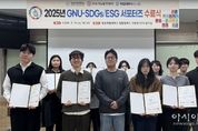 [아시아통신] 경상국립대학교 지속가능발전센터는 2월 11일 칠암캠퍼스에서 ‘2025년 GNU-SDGs/ESG 서포터즈 수료식’을 개최했다. 이날 수료식은 지속가능발전센터 소속 직원들이 참석한 가운데 센터장 인사말을 시작으로 수료증 수여 순으로 진행됐다. 참석자들은 한 해 동안 적극적으로 활동한 서포터즈 학생들의 노고를 격려하고 활동 성과를 공유했다. ‘GNU-SDGs/ESG 서포터즈’는 재학생이 직접 프로그램을 기획·운영하고 성과를 환류하는 학생 주도형 활동으로, 교내외 SDGs(지속가능발전목표) 및 ESG 가치 확산과 실천 문화 정착을 목적으로 운영되고 있다. 2025년 제4기 GNU-SDGs/ESG 서포터즈는 지난 5월 발대식을 시작으로 ▲대동제 SDGs 체험부스 ▲분리수GO! 캠페인 부스 ▲공정무역 인식 제고 캠페인 부스 등 다양한 프로그램을 기획·운영하며 학내 구성원의 참여를 이끌어 냈다. 이로써 일상 속 실천을 기반으로 한 지속가능성 인식 확산에 기여했다. 김영철 경상국립대학교 지속가능발전센터장은 “GNU-SDGs/ESG 서포터즈는 학생들이 주체가 되어 지속가능성과 ESG 가치
