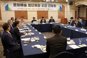 [아시아통신] 문화체육관광부 최휘영 장관은 9월 1일, 켄싱턴호텔 여의도(서울 영등포구)에서 음악, 연극, 무용, 문학, 미술 등 예술 분야별 협회‧단체장들을 만나 예술계 현장 목소리를 청취하고 지속 가능한 발전 방향 및 지원 방안을 논의했다. 음악, 연극, 무용, 문학, 미술 등 분야별 대표들과 예술계 발전 방안 논의 정부와 예술계 간 소통과 협력을 강화하기 위해 마련한 이번 간담회에는 (사)한국민족예술단체총연합회 김평수 이사장, 문화연대 이동연 공동대표를 포함해 ▴음악 분야에서는 (사)한국음악협회 대표인 이철구 이사장과 (사)국악진흥회 임웅수 부이사장이, ▴연극 분야에서는 (사)한국연극배우협회 임대일 이사장이, ▴무용 분야에서는 (사)한국현대무용협회 김형남 이사장과 (사)한국무용협회 조남규 이사장이, ▴문학 분야에서는 (사)한국작가회의 강형철 이사장과 (사)한국문학관협회 김종회 회장, (사)한국문인협회 김호운 이사장이, ▴미술 분야에서는 (사)한국조각가협회 권치규 이사장(분야별 성명 가나다순)이 참석했다. 참석자들은 예술인들의 창작 환경 개선, 지역 예술생태계 활성화, 국제교류 확대, 예술단체 운영의 지