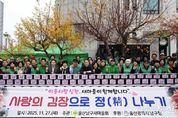 [아시아통신] 남구새마을회(회장 황병철)는 남구청 후생관 앞 주차장에서 따뜻한 손길이 더욱 필요한 동절기를 맞아 ‘사랑의 김장으로 김장담그기 행사’를 실시했다고 27일 밝혔다. 이번 행사는 26일과 27일 2일간 일정으로 소외되는 이웃이 없는 밝고 인정 넘치는 행복남구 건설을 위해 마련됐고, 남구새마을회(회장 황병철), 남구새마을협의회(회장 서병찬), 남구새마을부녀회(회장 최인순)와 회원 등 150여 명이 참여한 가운데 김장 김치를 담갔다. 서동욱 남구청장도 새마을 지도자와 함께 이웃들에게 따뜻한 정을 나누기 위한 손길을 보탰다. 이날 정성껏 담근 김장김치는 관내 독거노인, 취약계층, 다문화가정, 기초생활수급자 등 400여 세대에 복지시설에 전달할 예정이다. 황병철 남구새마을회장은 “사랑이 담긴 김장 나눔이 이웃들에게 겨울을 따뜻하게 견뎌낼 수 있는 큰 힘이 됐으면 한다” 고 말했다.
