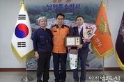 [아시아통신] 남양주소방서는 2일, 다산동 오피스텔 화재 현장에서 신속한 초기 대응으로 인명과 재산 피해를 예방한 관리실 직원 김보환 씨(56세)에게 소방활동 유공자 표창을 수여했다고 밝혔다. 김 씨는 지난 8월 29일 새벽 발생한 오피스텔 화재 당시 손과 발에 경미한 화상을 입으면서도 소화기를 사용해 불길을 진압하고 거주자를 안전하게 대피시켜 큰 피해를 막았다. 남양주소방서는 이러한 김 씨의 용기와 희생정신이 지역 사회의 귀감이 된다고 설명했다. 표창을 받은 김 씨는 “오피스텔에는 법정 소방시설(소화기, 감지기 등)이 설치돼 있지만 화재는 언제든 발생할 수 있다”며 “평소 소방시설을 점검하고 사용하는 방법을 익히는 것이 중요하다. 특히 오피스텔은 주택용 소방시설 설치 의무대상은 아니지만, 세대 내에 자율적으로 소화기나 단독경보형 감지기를 추가로 비치한다면 안전을 더욱 높일 수 있다”고 소감을 전했다. 나윤호 남양주소방서장은 “김보환 씨의 조언처럼 우리 소방서도 시민 여러분께 주택용 소방시설 설치와 생활 속 화재 예방 실천을 적극 권장한다”며 “남양주시민 모두가 작은 관심과 준비로 큰 안전을 지켜 주길 바란다”
