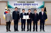 [아시아통신] 전라남도의회와 경상남도의회는 12월 17일, 전라남도의회에서 '우주항공복합도시 건설 및 지원에 관한 특별법'의 조속한 제정을 촉구하고, 대한민국 우주항공산업의 경쟁력 강화를 위한 정책 공조와 공동 대응을 골자로 한 공동협력 업무협약을 체결했다. 이날 협약식에는 전라남도의회 김태균 의장과 경상남도의회 최학범 의장이 참석해 협약서에 서명하고, 특별법 조속 제정을 위한 양 의회의 공동대응 의지를 공식화했다. 양 의회는 이번 협약을 통해 ▲우주항공복합도시 조성 필요성과 특별법 제정 당위성에 대한 대정부·대국회 공동 건의 ▲건의문·결의문 등 정책 자료의 상호 공유 ▲전남·경남을 잇는 우주항공산업벨트 구축을 위한 협력 ▲토론회·공청회 등 공동 연구활동 추진 ▲보도자료 및 홍보 활동 시 메시지의 일관성 유지 등에 협력하기로 했다. 특히 이번 협약은 지난 9월 전남과 경남 양 도지사 간 상생협력 협약 체결과 12월 문금주·서천호 국회의원의 특별법 공동발의에 이어, 지방의회 차원에서 특별법 제정의 당위성을 공식화한 후속 조치라는 점에서 의미가 크다. 김태균 전라남도의회 의장은 “우주항공복합도시는 특정