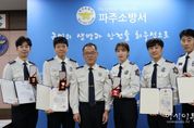 [아시아통신] 파주소방서는 8일 오전 서장 집무실에서 시민의 생명 보호와 소방행정 발전에 기여한 업무 유공 소방공무원에 대한 표창 수여식을 개최했다고 밝혔다. 이번 수여식은 각종 재난 현장과 응급의료 위기 상황 속에서도 투철한 사명감으로 맡은 바 직무를 성실히 수행한 직원들의 노고를 치하하고 사기를 진작하기 위해 마련됐다. 이날 행사에는 수여 대상자 11명 중 근무자 등을 제외한 5명이 참석했으며, ▲중증세이버 순금기장 ▲의정갈등 대응 유공(소방청장) ▲구급업무 유공(도지사) 분야에 대한 시상이 진행됐다. 특히 광탄119안전센터 박진호 소방장과 탄현119안전센터 김우진 소방장은 남다른 헌신을 인정받아 2개 분야에서 동시에 수상하는 영예를 안았다. 박진호 소방장은 ‘중증세이버 순금기장’과 의정갈등 상황 속 비상 진료 체계 유지에 기여한 공로로 소방청장 표창을, 김우진 소방장은 중증 응급환자의 생명을 소생시킨 공로로 ‘중증세이버 순금기장’과 함께 구급현장분야 유공 표창을 각각 수여 받았다. 또한 운정119안전센터 황보라 소방사가 중증세이버 순금기장을, 재난대응과 전영대 소방장과 금촌119안