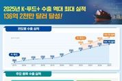 [아시아통신] 농림축산식품부는 2025년 케이-푸드 플러스(K-푸드+) 수출액(잠정)이 지난해보다 5.1% 증가한 136.2억 달러로 역대 최고 실적을 경신했다고 밝혔다. 세부적으로는 농식품 104.1억 달러, 농산업 32.2억 달러이며, 두 분야 모두 집계 이래 최대 실적이다. 【 농식품 분야 】 농식품은 2015년 이후 10년 연속 증가세를 유지한 것은 물론, 전년 대비 4.3% 증가로 최대 실적을 경신하며 사상 처음으로 100억 달러를 돌파했다. 라면이 단일 품목으로는 처음으로 15억 달러를 넘어섰고, 그 외에도 11개 품목이 역대 최고 수출액을 기록했다. 《품목별》라면, 소스류, 아이스크림 등의 가공식품과 포도, 딸기 등의 신선식품이 역대 최대 수출액을 기록했다. 라면은 전년 대비 21.9% 증가하면서 역대 최대 규모인 15.2억 달러 수출 실적을 기록했다. 글로벌 수요 증가에 발맞추어 생산을 확대하고 안정적인 공급망을 구축한 것이 주요 요인으로 작용했다. 치즈맛 매운 라면 등의 신제품이 호응을 얻었고, 중국, 미국 등 기존 주력 시장은 물론 중앙아시아(CIS), 중동(GCC) 등에서도