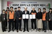 [아시아통신] 동두천시와 공공연대노동조합 동두천지부는 지난 16일 동두천시청 1층 소회의실에서 2025년 공무직 노조 단체협약 체결식을 개최했다고 밝혔다. 이번 단체협약은 2023년 12월 노동조합 측의 단체협약 갱신 교섭 요구를 시작으로, 약 2년간 총 21회의 본교섭과 2회의 조정회의, 심판회의를 거쳐 최종 합의에 이르렀다. 공무직 노조의 단체협약 갱신을 위한 18개 요구 사항 가운데 주요 합의 내용은 ▲환경미화원 4명 채용 ▲장기재직휴가 확대 ▲병가 사용 조건 완화 ▲자녀 입영휴가 신설 등 총 6개 안건이다. 박형덕 동두천시장은 “이번 단체협약을 통해 공무직 근로자의 근무여건이 개선되어 더 안정적인 근무 환경에서 시정 발전에 기여할 수 있는 계기가 마련된 것 같다”며, “앞으로도 노사간 상호 신뢰와 협조를 바탕으로 함께 성장하는 근무환경을 조성해 나가겠다”라고 밝혔다. 박성수 지부장은 “단체협약에 합의한 안건들이 공무직 근로자의 사기 진작과 업무 능률을 높이는데 도움이 될 것이라고 생각하며, 앞으로도 노사간 소통과 협력을 통해 공무직 근로자의 복지와 권익을 위해 힘쓰도록 노력하겠다.”라고 말했다.