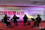 [아시아통신] 하남문화원은 2025년 11월 13일 오후 2시, 하남문화원 대강당에서 인문학 콘서트 '인공지능의 시대, 예술은 어디로 가는가?'를 성황리에 개최했다. 올해로 19번째를 맞은 이번 행사는 급격히 변화하는 인공지능 시대 속에서 예술의 본질과 인간 창의성의 의미를 성찰하기 위해 기획됐었다. 이날 특강은 2024년 문화대학 특강 예술, 달라진시선-포스트모더니즘 쉽게 이해하기 주제로 명강연으로 큰 호응을 얻었던 홍광수 작가가 맡아, 생성형 AI가 예술 창작 과정에 미치는 영향과 예술의 본질적 가치가 무엇인지에 대해 깊이 있는 강연을 펼쳤다. 홍 강사는 “AI가 만들어내는 작품이 늘어나고 있지만, 예술을 통해 감동을 주는 힘은 여전히 인간의 내면에서 비롯된다”고 강조하며 기술과 예술의 미래 관계에 대해 다양한 관점을 제시했다. 특강 후 이어진 현악 4중주 연주팀 ‘스트링 콸텟(String Quartet)’의 공연은 인문학 콘서트의 주제와 긴밀히 연결되며 깊은 인상을 남겼다. 이번 무대는 ‘기술이 대체할 수 없는 인간적 감성’을 음악으로 표현하는 데 초점을 맞추어 기획됐다. 현장에서 연주된 ‘Gabriel’s Oboe’