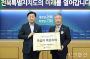 [아시아통신] 전북특별자치도는 2일 도청에서 대한적십자사 전북지사에 2026년도 적십자 특별회비 500만 원을 전달했다. 이번 전달식은 2026년도 적십자 모금 개시를 알리는 제1호 특별회비 전달식으로 진행됐으며, 김관영 도지사가 직접 특별회비를 전했다. 전달식에는 대한적십자사 전북지사 김홍식 회장과 임직원이 참석해 지역사회 나눔 실천의 의미를 함께했다. 전북도는 매년 적십자 특별회비를 기탁하며 도민 참여 확산과 기부문화 정착에 앞장서고 있다. 적십자 특별회비는 지역 취약계층 긴급지원, 재난 대비 및 구조 활동, 헌혈 활성화, 안전교육 등 다양한 인도주의 사업에 활용된다. 특히 기후변화로 인한 자연재해 증가와 복지 사각지대 확대 속에서 적십자 활동의 중요성이 더욱 강조되고 있다. 내년도 대한적십자사 전북지사의 적십자회비 모금 목표는 12억 4천만 원이며, 2026년 1월 31일까지 집중 모금기간을 운영하고 있다. 김관영 도지사는 “적십자 특별회비는 어려운 이웃을 돕고 재난 상황에서 생명을 지키는 데 중요한 역할을 한다”며 “전북도는 앞으로도 도민들과 함께 지역 공동체를 위한 나눔 실천에