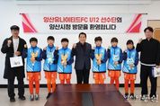 [아시아통신] 양산시는 지난 3일 시청 3층 상황실에서 제55회 전국소년체육대회 경상남도 대표 선발전을 앞두고 훈련에 매진 중인 ‘양산유나이티드FC U12’ 선수단을 초청해 격려 간담회를 가졌다. 이날 간담회에는 양산유나이티드FC 배익두 대표이사와 조용기 감독을 비롯해 오지훈(부산 좌산초), 박라현(가촌초), 박승우(금송초), 강준서(동산초), 유현우(황산초), 김가인(금오초) 등 팀을 대표하는 12세 이하 유망주 선수 6명이 참석했다. 이번 간담회는 지역을 대표해 구슬땀을 흘리고 있는 어린 선수들의 사기를 북돋우고, 현장의 목소리를 청취하기 위해 마련됐다. 양산유나이티드FC U12팀은 현재 다가오는 전국소년체전 경남 대표 선발전을 대비해 강도 높은 훈련을 이어가고 있다. 지난 2021년 법인화와 함께 공공스포츠클럽으로 출범한 양산유나이티드FC는 짧은 역사에도 불구하고 괄목할 만한 성과를 거두며 영남권 최고의 유소년 축구 명문으로 자리 잡았다. 주요 성과로는 ▲경남 초·중 종합체육대회 6회 연속(2020~2025) 우승 ▲2년 연속(2023~2024) 전국소년체육대회 경남 대표 선발 등