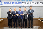 [아시아통신] 수원특례시의회(의장 이재식)는 9월 10일(수), 수원시청 상황실에서 열린 시민체감정책 여야 공동선언에 참여했다. 이날 선언식에는 이재식 의장을 비롯해, 김정렬부의장, 더불어민주당 김동은 대표, 국민의힘 박현수 대표, 수원시장, 제1・2부시장 등이 함께해 민생안정을 위한 4대 시민체감정책 추진에 뜻을 모았다. 이번에 공동선언한 정책은 ▲출산지원금 확대(첫째아 신설, 둘째아 확대) ▲생리용품 지원 사업(11~18세 여성 청소년) ▲무상교통사업(70세 이상 어르신 등) ▲대상포진 무료접종 사업(65세 이상) 4개 사업으로, 세대와 계층을 아우르는 생활 밀착형 민생정책이다. 이재식 의장은 “오늘 수원특례시의회와 수원시가 함께 시민체감정책 추진에 대한 여야 공동 선언을 하게 되어 매우 뜻깊게 생각한다”며, “이번 4대 사업은 청소년부터 어르신까지 전 세대가 체감할 수 있는 정책으로 시민 한 분 한 분의 생활과 건강, 미래에 직접적으로 도움이 될 것이다”라고 말했다. 이어 “수원특례시의회는 이번 공동선언이 시민 삶의 변화를 실제 이끌어 낼 수 있도록 꼼꼼히 살피면서, 수원시와 함께 끝까지 책임지겠다.”고 강조했다. 김정렬 부의장은 “민생이 어려운 시기에
