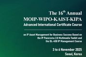 [아시아통신] 지식재산처는 세계지식재산기구(WIPO) 및 한국발명진흥회(KIPA)와 공동으로 11월 3일~ 6일까지 한국지식재산센터(서울 강남구)에서 '국제 지식재산 전문가 인증과정(AICC)'을 개최한다. 올해는 지식재산처·WIPO·KIPA가 공동 개발한 지식재산(IP) 비즈니스 교육 e러닝 콘텐츠인 IP 파노라마 2.0을 활용해 온라인 과정을 수료한 119개국 1,364명 중 23개국 35명의 우수 학습자를 최종 선발해 서울에서 오프라인으로 심화 교육을 진행한다. 이번 교육을 통하여 세계 각국의 지식재산 전문가들이 지식재산 경영 및 활용 전략을 수립하는데 도움을 받을 수 있을 것으로 기대된다. 이번 오프라인 교육 과정은 국제 비즈니스 경영 측면에서 지식재산의 효과적인 활용과 관련된 ▲ 지식재산(IP) 가치 평가 및 금융 ▲ 인공지능(AI) 등 최신 IP 동향 ▲ 특허등급 평가 및 활용 사례 ▲ IP 면허 전략 ▲ IP 면허 협상을 위한 실습 등으로 구성됐다. 특히, 창업초기기업ㆍ개척기업을 위한 IP 경영전략 수립 방법, 분쟁 대응전략 등의 내용도 포함되어 있어 경영 실무역량 배양에 도움이 될 것으로 기대된다. &nbs