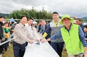 [아시아통신] 성주군 수륜면 수성리 어울림마당(수성리 104)에서 10. 18.부터 19.까지 이틀간 열린 성주군 가을 대표축제 '2025 성주가야산 황금들녘 메뚜기축제'가 전국 각지의 관광객이 모이며 성황리에 종료됐다. 축제장 진입로에 늘어선 허수아비와 바람개비 행렬은 방문객들을 따스하게 맞이하고 축제장 입구에 펼쳐진 황금빛 들녘은 가을의 풍요로움을 아낌없이 선사한 축제였다. 축제 대표 프로그램인 친환경 농촌체험(메뚜기잡이, 고구마 캐기, 메기잡이, 사과낚시)과 온 가족이 함께하는 가을 운동회, 다양한 체험 부스와 공연은 방문객들에게 풍성한 즐길거리·볼거리를 제공했고, 축산물 무료시식 및 다양한 먹거리들로 방문객들의 입맛까지 사로잡았다는 평이다. 전년에 이어 올해도 무대와 개막식 행사를 없애는 대신 축제장을 방문한 관광객들과 함께 청정 수륜쌀로 만든 가래떡을 길게 뽑으며 모두의 행복과 안녕을 기원하는 ‘한마음 가래떡 뽑기’ 퍼포먼스를 펼쳐 축제장을 찾은 방문객들에게 색다른 재미를 선사했다. 올해는 그동안의 성과에 만족하지 않고 신규 프로그램과 체험을 개발하여 축제를 내실화했다는 점에서 그 의미가