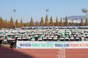 [아시아통신] 창원특례시는 14일 창원스포츠파크 보조경기장에서 열린 2025 창원시 새마을지도자 한마음대회에서 약 2,000여 명이 참석한 가운데 ‘시민 공감 릴레이 캠페인’의 세 번째이자 마지막 퍼포먼스를 성황리에 진행했다고 밝혔다. 이번 퍼포먼스는 창원특례시가 직면한 특례시 지위 불안정 문제와 실질적인 권한 부족 문제를 시민과 함께 공유하고, 비수도권 유일의 특례시로서 특례시 기준 변경과 특례시 지원 특별법 조기 제정의 필요성을 널리 알리기 위해 마련된 ‘시민 공감 릴레이 캠페인’의 마지막 순서다. 이날 현장에서는 두 대의 드론이 상공으로 동시 이륙해 ‘비수도권 특례시 기준 변경’, ‘특례시 지원 특별법 조기 제정’ 문구가 적힌 대형 현수막을 펼치며 창원시의 염원을 하늘 위에 선명하게 드러냈다. 이어 참석자들은 글자모형과 손피켓을 일제히 들어 올리며 특례시 지위사수와 특별법 제정을 향한 시민들의 의지를 강하게 표출했다. 또한, 사회자의 “비수도권 특례시 기준변경”, “특례시 지원 특별법 조기제정” 선창에 맞춰 참석자 전원은 힘차게 “할 수 있다!”를 외치며 현장의 분위기를 더욱 뜨겁게 달궜다.