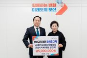[아시아통신] 오산시는 지난 10일 경기도여성단체협의회 오산시지회가 지역 인재 육성을 위해 장학금 500만 원을 기탁했다고 밝혔다. 경기도여성단체협의회 오산시지회는 여성의 권익 증진과 지위 향상을 위해 활동하는 단체로 ▲가정폭력 예방교육 ▲양성평등주간 기념행사 ▲불법촬영 금지 및 저출산 극복 캠페인 등을 추진하며 저소득층을 위한 봉사활동과 다양한 사회공헌 활동을 이어오고 있다. 또한 저소득 취약계층 지원금과 특기 장학금 기탁 등 꾸준한 나눔 활동을 펼친 공로를 인정받아 지난해 3월 오산시 명예의 전당에 등재됐으며, 이번에 장학금 500만 원을 추가로 기탁하며 지역사회 공헌 활동을 이어가고 있다. 강진화 회장은 “지역의 우수한 인재들이 자신의 재능을 마음껏 발휘하며 성장하길 바라는 마음으로 회원들과 뜻을 모았다”며 “앞으로도 지역사회와 함께 인재를 키우는 나눔 활동을 지속적으로 이어가겠다”고 말했다. 이권재 오산시장은 “지역 인재 육성을 위해 따뜻한 나눔을 실천해 주신 경기도여성단체협의회 오산시지회에 깊이 감사드린다”며 “회원들의 정성이 담긴 장학금이 오산의 학생들이 자신의 재능을 펼치고 더 큰 꿈을