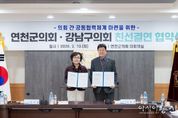 [아시아통신] 강남구의회는 10일 연천군의회를 방문해 지방의회간 우호 증진 및 공동발전을 위한 친선교류 강화를 논의했다. 친선결연 협약식은 연천군 임시회 본회의가 종료한 후 진행했으며 이호귀 의장·복진경 부의장·이동호 운영위원장·손민기 의원이 참석해 친선결연 논의 및 상호 협력 추진을 위한 차담회를 진행하며 문화시설 등을 시찰했다. 주요 협약 내용으로 지역경제 활성화를 위한 교류 추진, 기관 간 협력 활동을 통한 정보교환 및 상호발전 방안 협의, 기관 간 공동이익을 위한 분야별 협력 추구, 그 밖에 상호 발전을 위해 필요한 사항이 논의됐다. 이호귀 의장은 답사를 통해“연천군이 지역 발전과 생태 보호에 힘써온 노력에 진심 어린 존경을 표한다”라며, “지방자치 발전과 지역 간 상생의 모범을 만들기 위해 연천군의회와 더욱 긴밀히 협력하겠다”라고 말했다.