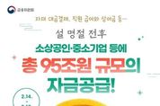 [아시아통신] 자재 대금결제, 직원 급여와 상여금 등… 설 명절 전후 소상공인·중소기업 등에 총 95조 원 규모의 자금공급! (2.14.~2.18.) - 중소·중견기업 ■ 특별대출, 보증 · 지원기간: ~3.5. · 신청방법: 산업은행, 기업은행, 신용보증기금 지점 상담 - 중소기업·소상공인 ■ 거래 기여도, 신용등급에 따라 은행권 금리우대 대출 · 지원기간: ~3.13. *4대 시중은행 기준(타 은행은 보도자료 참고) · 신청방법: 은행 영업점 방문→설 명절 특별자금지원 상담 - 전통시장 상인 ■ 명절 자금 지원 · 내용 : 연 4.5% 이내 금리 / 최대 1000만 원 대출 · 지원기간: ~2.13. · 신청방법: 우수시장(기초지자체 추천) 소속 상인이 상인회에 신청