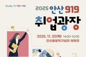 [아시아통신] 안산시는 오는 20일 ‘2025년 11월 안산 919취업광장’을 안산올림픽기념관 체육관에서 개최한다고 5일 밝혔다. 이번 ‘안산 919취업광장’은 안산시일자리센터와 지역 일자리 유관기관이 협업해 진행하는 올해의 마지막 채용행사다. 시는 인력난을 겪고 있는 기업체에 우수 인력을 지원하고 취업을 희망하는 구직자에게는 일자리 기회를 제공하는 등 미스매칭 해소를 통한 만남의 장을 마련한다. 이날은 우수기업체 30여 개 사가 참여할 예정이다. 한편, 안산시는 지난 9월 경기도와 공동으로 ‘안산시 스마트허브 2040·경기도 5070 통합 일자리박람회’를 개최해 40개 기업 면접에 1,300여 명이 참여한 바 있다. 참가를 원하는 구직자는 박람회 당일 이력서 등 입사 지원 서류를 지참해 방문하면 ▲1:1 채용면접 ▲1:1 이력서 컨설팅 등 현장에서 희망하는 기업에 지원하고 면접에 참여할 수 있다. 일자리 기관별 취업 상담 및 재무 상담도 받을 수 있다. 참여 기업 정보와 박람회 일정 등 자세한 내용은 안산시청 누리집 ‘안산시 주요서비스-취업(일자리)정보’에서 확인하거나, 안산시일자리센