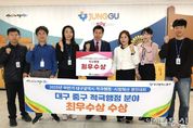 [아시아통신] 대구 중구는 대구시가 주최한 ‘2025년 적극행정·시정혁신 경진대회’에서 ‘전국 최초! 교동 음식물 수거 실명제로 악취도 잡고 시민의 마음도 잡다’ 사례로 최우수상을 받았다고 밝혔다. 최근 교동 일대는 젊은 층이 즐겨 찾는 음식점과 주점이 급격히 늘어나면서, 새벽 시간대에 배출된 음식물 쓰레기 용기가 하루 종일 인도에 방치되는 문제가 심화했다. 악취와 미관 훼손, 보행 불편, 관광객 민원까지 이어지며 기존의 단속 중심 행정으로는 한계가 있었다. 이에 중구 환경과는 ‘현장에서 답을 찾자’라는 적극행정 정신 아래 전국 최초로 ‘음식물 수거 실명제 기반 생활환경 개선사업’을 기획·추진했다. 이 제도는 각 업소의 간판 이미지를 담은 전용 스티커를 음식물 수거 용기에 부착해 소유주를 명확히 표시하는 방식으로, 수거 후에는 용기를 해당 업소 앞으로 즉시 되돌려놓아 무분별한 방치와 악취 발생을 원천 차단했다. 사업 추진 과정에서 환경과 직원들은 교동 일대 61개 업소를 직접 방문해 170여 개 용기를 세척하고, 간판 이미지를 촬영해 스티커를 제작·부착했다. 또 상인들과