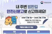 [아시아통신] 내 주변 빙판길 안전신문고로 신고하세요! '25년 12월 1일 ~ '26년 2월 28일 겨울철 재난 안전 위험 요소 집중신고 기간 운영 ■ 겨울철 집중신고 대상 (대설) 제설 미흡, 제설함 관리 불량, 시설물 파손·붕괴 위험 등 (한파) 인도 결빙, 동파 우려, 고드름 낙하, 한파 쉼터 불편 등 (화재) 비상구 물건 적치, 담배꽁초 투기, 소화시설 불량, 불법 취사·소각 등 (축제·행사) 인파 밀집 우려, 행사장 시설 파손, 안전관리 미흡 등