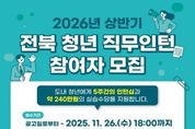 [아시아통신] 전북특별자치도와 전북창조경제혁신센터가 ‘2026년 상반기 전북 청년 직무인턴’ 참여자를 11월 26일까지 모집한다. ‘전북 청년 직무인턴’은 도내 공공기관과 기업에서의 실무형 직무 체험을 통해 청년들의 취업 준비와 진로 탐색을 지원하는 전북 대표 청년 일자리 프로그램이다. 2017년부터 운영해오며 현장 경험 중심의 역량 강화 모델로 자리 잡았다. 올해에는 상하반기 총 433명이 참여했으며, 내년 상반기에는 전북은행, 전북국제협력진흥원, 전북신용보증재단 등 42개 기관·기업에서 215명의 청년이 참여할 예정이다. 선발된 인턴은 2026년 1월 12일부터 2월 13일까지 5주간 직무 체험을 진행하며, 배치 전 실무 적응과 취업 준비를 위한 사전 교육도 제공된다. 도는 이번 프로그램을 통해 청년들이 실제 근무 환경을 경험하며 직무 이해도와 경험 기반의 취업 경쟁력을 높일 수 있을 것으로 기대하고 있다. 참여 신청은 전북 청년 직무인턴 공식 누리집을 통해 온라인으로만 가능하다. 한편, 2025년 하반기 모집에는 1,026명이 지원하는 등 매년 높은 경쟁률을 보이며 도