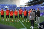 [아시아통신] 김진태 강원특별자치도지사(구단주)는 11월 3일 오후 3시, 일본 히로시마 에디온 피스 윙 스타디움을 방문해 아시아챔피언스리그 조별리그 원정경기를 앞두고 훈련 중인 강원FC 선수단을 격려하고 응원의 메시지를 전했다. 이날 선수들이 훈련 중인 에디온 피스 윙 스타디움은 내일(4일) 경기가 열릴 장소로, 구단주인 김진태 지사는 시합 하루 전 경기장을 찾아 라커룸, 웜업존, 원정응원석 등을 둘러보며 부족한 점이 없는지 점검하고 선수단 지원에 부족함이 없도록 만전을 다할 것을 당부했다. 정경호 감독은 “선수 모두가 ‘강원’의 이름을 가슴에 새기고 경기에 임하고 있다”며, “도민과 팬들의 기대와 응원에 보답할 수 있도록 최선을 다하겠다”고 감사의 뜻을 전했다. 김시성 도의장은 “내일 경기에 500명이 넘는 응원단이 원정석을 가득 메워 목이 터져라 응원할 예정”이라며, “열심히 응원할 테니 기죽지 마시고 파이팅해 달라”고 말했다. 구단주인 김진태 지사는 “일본에서 우리 선수들을 만나니 감개무량하다”며, “긴장하지 말고 대한민국 강원FC라는 긍지를 가지고 평소처럼 실력을 발휘해 달라”는 격려와