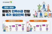 [아시아통신] 한국고용정보원(원장 이창수)은 '중장기 인력수급 전망'을 통해 향후 10년간 우리나라 노동시장의 인력공급(경제활동인구)과 인력수요(취업자)가 구조적으로 전환되는 양상을 전망하고, 향후 지속적인 성장을 위해 추가로 필요한 인력을 추계했다. 1.중장기 인력수급 전망(2024~2034) 주요 전망 결과를 보면, 15세 이상 인구 증가 폭은 과거에 비해 크게 둔화되고, 경제활동인구는 2030년부터는 본격적인 감소세로 전환될 것으로 나타났다. 저출생·고령화의 영향으로 생산가능인구(15~64세)는 지속적으로 감소하는 반면, 65세 이상 고령층 비중은 2034년 31.7%까지 확대되면서 노동 공급의 구조적 제약이 본격화될 전망이다. 이로 인해 15세 이상 전체 경제활동참가율은 전망 전기(‘24~’29년)에 감소 전환하는 반면, 고령층과 여성의 경제활동참가율은 점진적으로 상승할 것으로 예상되어, 노동시장 내 고령화 심화와 인력 구성의 질적 변화가 동시에 진행될 것으로 보인다. 2024년~2034년까지 취업자 수는 6.4만 명 증가하겠으며, 노동공급 제약의 영향으로 2030년부터는 감소