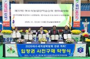 [아시아통신] 여수시는 지난 12일 진남실내체육관에서 열린 ‘제22회 여수시 농업인학습단체 한마음대회’가 농업인 등 700여 명이 참석한 가운데 성황리에 마무리됐다고 밝혔다. 한국생활개선여수시연합회와 한국농촌지도자여수시연합회가 공동 주관한 이번 행사는 ‘AI 과학영농 시대, 여수농업이 선도한다’를 주제로 기후변화와 고령화에 대응하고 AI 기술을 활용한 지속 가능한 농업 실현의 뜻이 담겼다. 이날 행사에는 한국농촌지도자전라남도연합회와 한국생활개선전라남도연합회가 함께 참여해 총 4개 단체가 2,500만 원 규모의 2026여수세계섬박람회 입장권 구매 약정식을 진행하며 박람회 성공개최 염원에 뜻을 모았다. 또한 송미령 농림축산식품부 장관과 전라남도 생활개선회원들의 ‘섬박람회 성공개최 염원 엽서’가 전시돼 눈길을 끌었으며 참석자들이 직접 작성한 엽서 현장 평가 이벤트와 ‘섬박람회 OX 퀴즈’도 진행돼 축제 분위기 속에서 박람회 붐 조성에 기여하는 시간이 됐다. 행사장에는 회원들이 직접 재배한 농산물과 계절별 음식 작품, (사)아름다운 여수시귀농귀촌협회에서 생산한 우수농산물 전시·홍보 공간도 마련돼 지역 농업