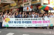 [아시아통신] 대구 북구청은 민족 고유 명절인 추석을 앞두고 10월 1일 14시 30분부터 팔달신시장에서 구청장과 간부공무원 등 50여 명이 참여하여 장보기 행사를 가졌다. 해마다 명절이면 온라인 쇼핑몰, 대규모 유통업체 등 이용으로 위축된 전통시장에 활력을 불어넣고자 장보기 행사를 개최했다. 이날 장보기 행사에는 배광식 북구청장을 비롯한 구청 실·과장 이상 간부공무원과 참여 희망 직원 등 50여 명이 자율적으로 참여하여 전통시장 곳곳을 돌며 제수용품과 다양한 먹거리를 구입하면서 각 상인들과는 전통시장의 상황 등을 소통하고, 시장을 찾는 주민들에게는 온누리상품권 환급행사와 시장 홍보 활동도 병행했다. 배광식 북구청장은 “추석을 맞이하여 물가상승과 경기침체로 어려움을 겪고 있는 전통시장에 활력을 불어넣고 상인들에게 조금이라도 도움이 되고자 장보기 행사를 마련했다.”며, “이번 행사를 계기로 더 많은 주민들이 전통시장을 이용하고, 추석 연휴 동안 가족들과 즐거운 명절을 보내시길 바란다.”고 전했다.