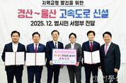 [아시아통신] 경산시는 17일 국회 본관 소회의실에서 조지연·권영진 국회의원, 조현일 경산시장, 김학홍 경북도 행정부지사, 안효대 울산시 경제부시장 등 관계 지자체 및 국회 관계자 20여 명이 참석한 가운데 경산~울산 고속도로 신설의 국가 계획 반영을 건의하며, 범시민 서명부와 3개 지자체장의 공동선언문을 국토교통부에 공식 전달했다. 이날 경산시는 경산~울산 고속도로 신설을 촉구하는 범시민 서명부(160,123명)와 함께, 경북도·울산시·경산시가 공동으로 뜻을 모은 선언문을 전달하며, 김윤덕 국토부 장관에게 사업의 필요성과 제3차 고속도로 건설계획 반영을 요청했다. 이와 함께 권영진 국회의원도 함께 참석하여 뜻을 모았다. 경산~울산 고속도로는 영남 내륙과 동남권 산업권을 직접 연결하는 핵심 교통축으로, 이동 거리 단축과 물류 효율성 제고를 통해 지역 간 산업 연계 강화와 초광역 경제권 형성에 기여할 것으로 기대되고 있다. 특히 자동차부품 산업이 집적된 경산과 완성차 산업의 중심지인 울산을 직결함으로써, 기존 우회·경유 구조로 인한 물류 비효율을 개선하는 기반이 될 수 있다는 평가다. 이 과정에서 경