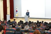 [아시아통신] 박범인 금산군수는 지난 10월 1일 금산읍 청산회관에서 열린 월례회의에서 제43회 금산세계인삼축제 운영에 나서준 자원봉사자, 주민, 공직자 등에게 감사를 표했다. 이 자리에서 “금산군은 대한민국 인삼산업의 중심이고 세계인삼 산업을 선도하고 있다”며 “금산세계인삼축제는 이러한 금산군 인삼산업의 보루”라고 말했다. 이어, “많은 분이 애써주신 덕분에 축제가 국내외에 긍정적인 평가를 받고 있다”며 “담당 부서에서는 축제 결산보고회를 열고 성과 및 개선할 점을 분석해 달라”고 지시했다. 또한, “축제에 참여하고 지원해 주신 사회단체 회원 등 노력해 주신 분들이 많다”며 “잊지 말고 감사의 마음을 전해달라”고 당부했다. 이 외에도 박 군수는 청렴도 평가 대응, 올해 업무 마무리 등에 철저를 기해달라고 언급했다.