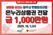 [아시아통신] 파주시는 지난 1일 대한적십자사 서울중앙혈액원에 1천만 원 상당의 헌혈장려지원금 상품권을 전달했다. 시는 안정적인 혈액 공급 기반을 마련하고 지역사회 내 헌혈 참여문화를 확산하기 위해 지난달 헌혈추진협의회를 구성 회의를 개최했으며, 회의 결과에 따라 관내 헌혈자 대상 인당 1만 원 상당의 온누리상품권을 지급할 예정이다. 특히 파주시는 말라리아 헌혈 제한 지역으로, 관내 헌혈의집이 없어 헌혈버스를 통해서만 헌혈이 가능하고 동계기간인 11월~3월에 한해 전혈헌혈이 허용되는 등 여러 제약이 있다. 이러한 어려운 여건 속에서도 시민들의 헌혈 참여를 확대하기 위해, 국내 말라리아 헌혈 제한 지역 중 최초로 헌혈장려금을 지원하게 됐다. 이한상 파주보건소장은 “헌혈장려지원금 지급이 혈액 수급 안정화와 헌혈 참여문화 확산에 기여하는 계기가 되길 기대한다”라고 밝혔다.