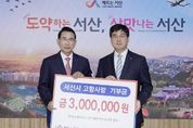 [아시아통신] 충남 서산시는 지난 6일 한국농어촌공사 서산·태안지사가 고향사랑기부금 300만 원을 기탁했다고 밝혔다. 시는 이날 시청 시장실에서 이완섭 서산시장, 김학배 한국농어촌공사 서산·태안지사장 등이 참석한 가운데 기탁식을 개최했다. 전달된 기부금은 서산시에 주소를 두고 있지 않은 한국농어촌공사 서산·태안지사 직원들의 자발적인 참여로 마련됐다. 김학배 한국농어촌공사 서산·태안지사장은 “직원들이 자발적으로 뜻을 모은 기부라 더욱 의미가 깊다”라며 “농어촌공사는 지역 주민과 함께 성장하고 상생하는 기관으로서 앞으로도 지역사랑 실천에 앞장서겠다”라고 말했다. 이완섭 서산시장은 “지역과 공공기관이 함께 만들어가는 고향사랑기부제가 더욱 확산하길 바란다”라며 “이번 기탁은 지역사회 발전에 함께하는 모범 사례가 될 것”이라고 밝혔다. 한편, 고향사랑기부제는 기부자의 주소지를 제외한 지방자치단체에 기부하면 세액공제와 답례품 등의 혜택을 제공하는 제도다. 모금된 기부금은 취약계층 지원과 지역공동체 활성화, 주민 복리 증진 등에 활용된다. 시는 지난 3월 서산시와 보령시를