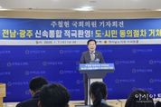 [아시아통신] 주철현 더불어민주당 국회의원(전남 여수시갑)은 7일 오후 2시 30분, 전남도의회 브리핑룸에서 기자회견을 열고, 광주·전남 행정통합에 대한 적극적인 환영 입장과 함께 통합의 방향에 대한 의견과 비전을 밝혔다. 주 의원은 이날 기자회견에서 “광주·전남 행정통합은 인구감소와 지방소멸이라는 위기를 극복하고, 수도권 일극 체제를 넘어 대한민국 어디서나 살기 좋은 지방시대를 여는 시대적 소명”이라며 “이 역사적인 여정에 누구보다 앞장서겠다”고 강조했다. 특히 주 의원은 이재명 정부의 ‘5극 3특’ 지역균형발전 전략을 언급하며, “광주·전남이 하나의 메가시티로 도약하는 것은 단순한 행정구역 개편을 넘어 공정 성장과 국가 균형발전의 토대를 만드는 일”이라며 “광주·전남 통합이 이재명 정부 국정철학의 핵심 성공 모델이 되도록 모든 역량을 쏟겠다”고 밝혔다. 이어 주 의원은 행정통합의 최종 완성은 주민투표를 통한 국민주권 실천이어야 한다고 분명히 했다. 아울러 “행정통합은 시·도민의 삶의 궤적을 바꾸는 중대한 사안으로, 헌법 제1조가 명시한 국민주권 원칙에 따라 통합의 결정권자는 국민”이라며 “주민 의견이 충분히