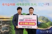 [아시아통신] 고성군은 11월 7일, 동건환경(주) 이영학 대표가 2024년에 이어 올해에도 고향사랑기부금을 500만 원을 기탁했다고 밝혔다. 이번 기부는 지역 균형 발전과 건전한 기부문화 확산을 응원하고자 하는 이영학 대표의 따뜻한 마음에서 비롯됐다. 동건환경(주)은 건설폐기물 중간처리업체로서, 슬레이트와 석면처리 전문 기업으로도 잘 알려져 있다. 이 회사는 2020년 코로나19 착한 기부, 2022년 경남고성공룡세계엑스포 성공 기원 예매권 구입, 2023년 사랑의 이웃돕기 성금 기탁 등 다양한 사회공헌활동을 통해 지역 사회와의 상생을 실천해 왔다. 이러한 기부와 나눔 활동은 지역 사회의 발전과 나눔 문화 확산에 크게 기여하고 있다. 이영학 동건환경(주) 대표는 “평소 고성군을 마음의 고향으로 생각할 만큼 고성에 대한 애정이 깊다”라며, “살기 좋은 고성을 위해 많은 분이 고향사랑기부에 동참해 주시기를 희망한다”라고 소회를 밝혔다. 이상근 고성군수는 “이영학 대표님의 소중한 기부금은 고성 발전 및 군민 복리 증진을 위해 사용될 것이며, 고향사랑기부제가 더욱 성공적으로 활성