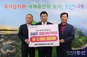 [아시아통신] 고성군은 11월 7일, 철열회(부산, 창원 거주 철성고 10회 졸업생 모임) 이상국 회장 외 회원 일동이 고향사랑기부금 300만 원을 기탁했다고 밝혔다. 이번 기부는 고향 고성군의 발전과 군민들의 복리 증진을 위한 뜻깊은 마음이 담겨 있으며, 고향사랑기부제 활성화를 위한 중요한 사례로 꼽힌다. 이상국 철열회 회장은 “나의 고향 고성을 위해 기부하게 되어 기쁘다. 많은 분들이 고향사랑기부에 참여하여 고성 발전에 보탬이 됐으면 좋겠다”라며 소감을 전했다. 또한, “앞으로도 고성에 대한 지속적인 관심을 가지고, 도울 수 있는 방향을 모색하겠다”라고 말했다. 이상근 고성군수는 “고성군의 취약계층 및 군민의 복리 증진을 위해 기부해 주시는 철열회 회원 일동의 깊은 마음에 감사드린다”라며, “이 소중한 기부금은 지역사회에 큰 힘이 될 것이며, 고성군 발전과 군민들의 삶의 질 향상에 기여할 것이다”라고 전했다. 고향사랑기부제는 주민등록상 주소지를 제외한 지자체에 연간 2,000만 원까지 기부할 수 있는 제도다. 기부자는 10만 원까지 전액 공제를 받을 수 있으며, 초과 금액에 대해서는