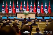 [아시아통신] 튀르키예를 국빈 방문한 이재명 대통령은 24일(현지시간) 앙카라 대통령궁에서 레제프 타이이프 에르도안 대통령과 양자회담을 통해 방산, 원자력, 바이오, 인프라, 인적·문화 분야 등에서 협력을 강화해 나가자는 데 뜻을 모았다. 양국 정상은 또 이러한 포괄적 협력을 원활히 추진하기 위한 '대한민국과 튀르키예공화국 간 전략적 동반자 관계에 관한 공동성명'을 채택했다. 이 대통령과 에르도안 대통령은 이날 단독회담에 이어 확대회담, 양해각서(MOU) 서명식을 순차적으로 가진 뒤 이 같은 내용을 담은 공동언론발표를 진행했다. 대한민국 대통령으로는 13년 만에 튀르키예를 국빈 방문한 이 대통령은 국부(國父)로 불리는 무스타파 케말 아타튀르크 영묘 헌화식과 대통령궁에서 열린 공식환영식에 참석한 후 에르도안 대통령과 1시간 43분에 걸쳐 정상회담을 했다. 이 대통령은 공동언론발표를 통해 "튀르키예의 한국전쟁 참전 75주년이자 저의 대통령 취임 첫해인 올해 '형제의 나라' 튀르키예를 방문하게 되어 매우 뜻깊게 생각한다"며 "양국은 2012년 '전략적 동반자 관계'를 체결하고 정무, 경제, 문화,